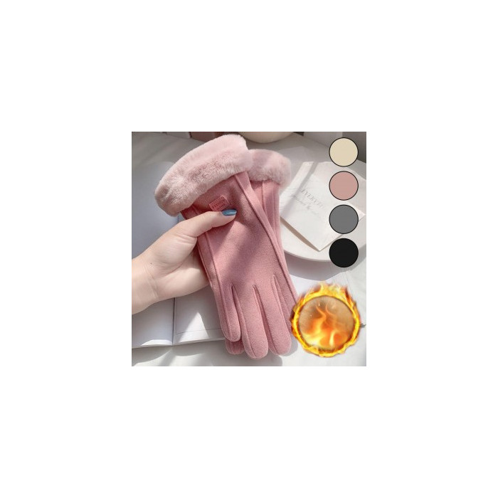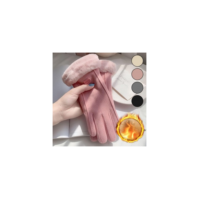 • Gloves Smartphone Touch Finger Hole Gloves Fur Warm Winter Women