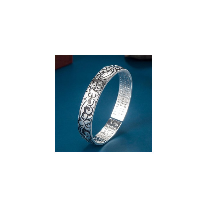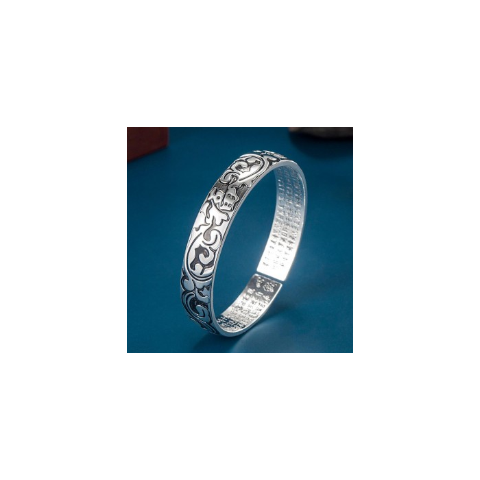 • Bok Bok Ja Bok Gi Won Buddhist Sutra Heart Sutra Buddhist Engraved S999 Surgical Silver Bracelet